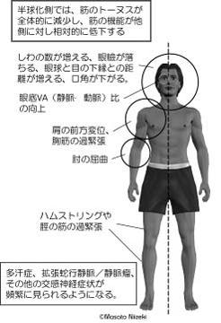 図1-16B:半球化/一側化によって観察される症状