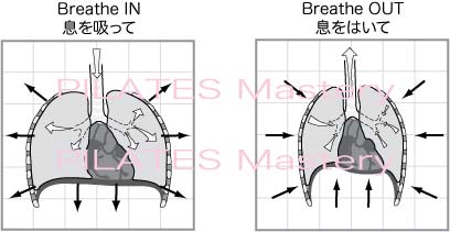 呼吸の図 肋骨と肺の形の変化が分かりやすいように、図を修正の上、背景にグリッドを入れてみました。 →